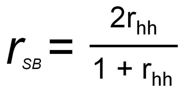 In this equation, r is the Split-Half Reliability Spearman Brown Formula, and r is the correlation between the two halves of the test.