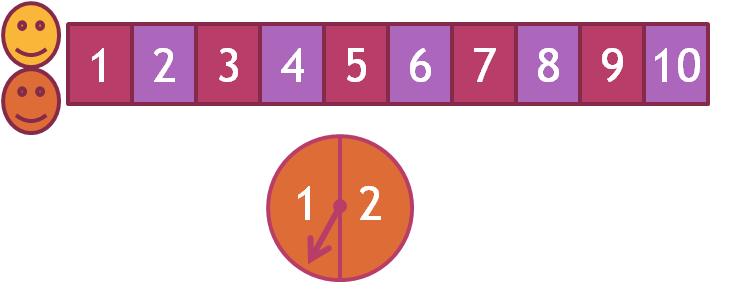 The game simply requires a piece of paper with the numbers 1 to 10 written across it, two markers (the smiley faces - these can be bottle caps), and a spinner with the numbers 1 and 2. (Alternatively, the numbers 1 and 2 can be written on pieces of paper and put into a cup). To play the game, the players take turns spinning the spinner (or pick a number from the cup) and move their marker that many spaces, naming the numbers they land on. ("I am on the number four. I picked the number two. I move five, six."). Children at a school were randomly placed in either a traditional maths group or the game group. Children in the traditional maths group received normal maths instruction whereas children in the game group played this game. Both groups spent an equal amount of time studying mathematics. After a few weeks, all of the children were tested on their maths skills. These researchers found that on average, children in the game group performed better than the traditional group in maths estimation, comparing numbers, and arithmetic! Siegler and Ramani found a better and more engaging way of teaching maths, and they have scientific evidence based on the children's maths test scores to support that their way of teaching is more effective than the traditional method. They can conclude that teachers who use this game to teach number skills will help their students do better in mathematics.